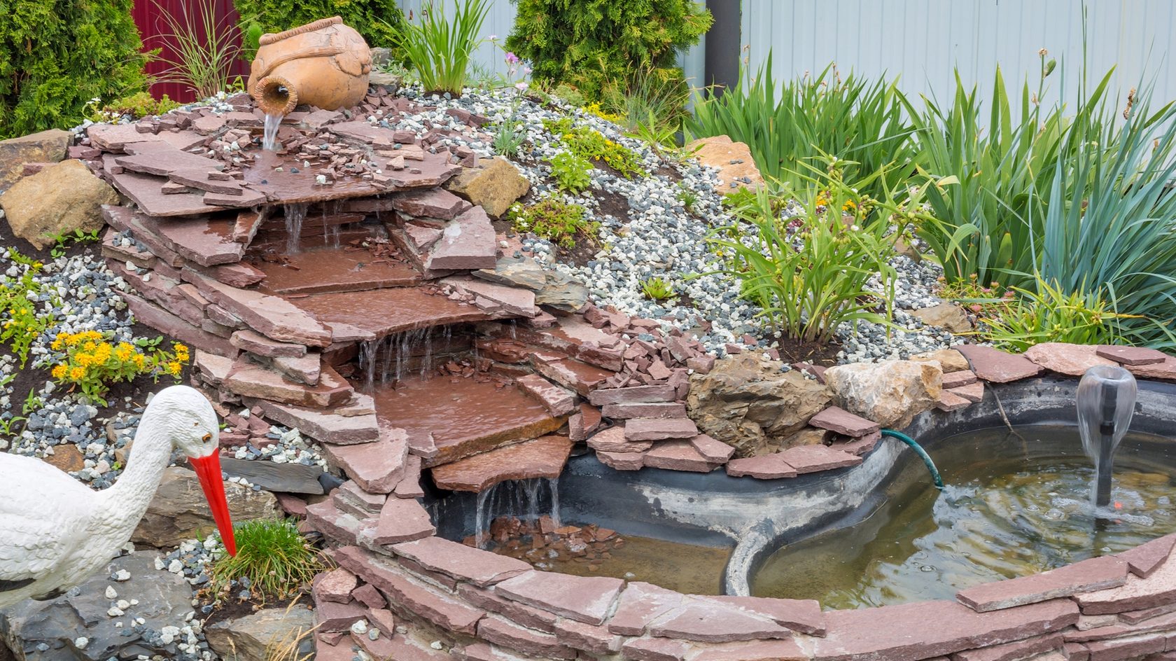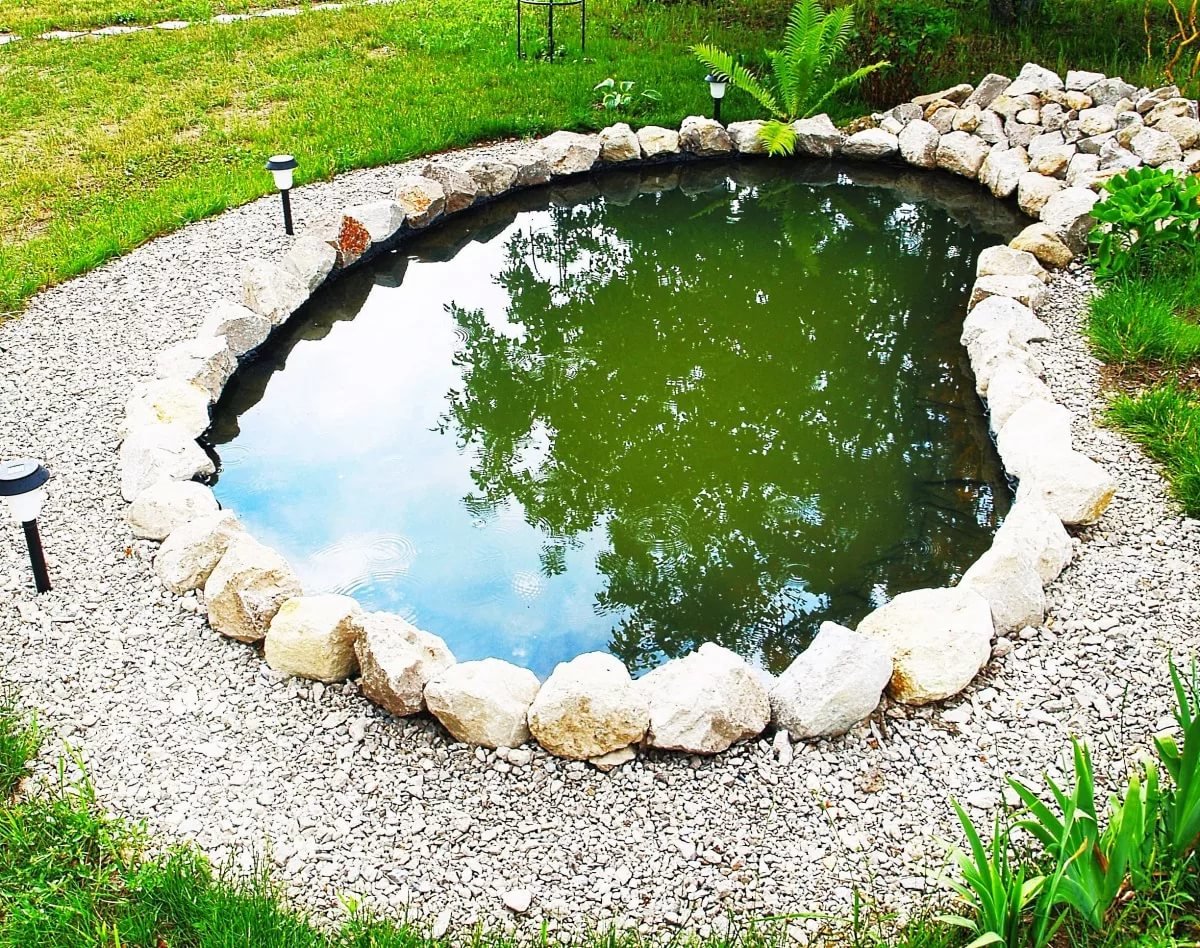 • Создание декоративного пруда на даче с помощью крупной гальки
