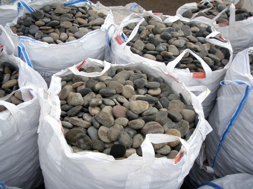 Плоская галька фракции 50-100 мм: удобный и недорогой декоративный материал.