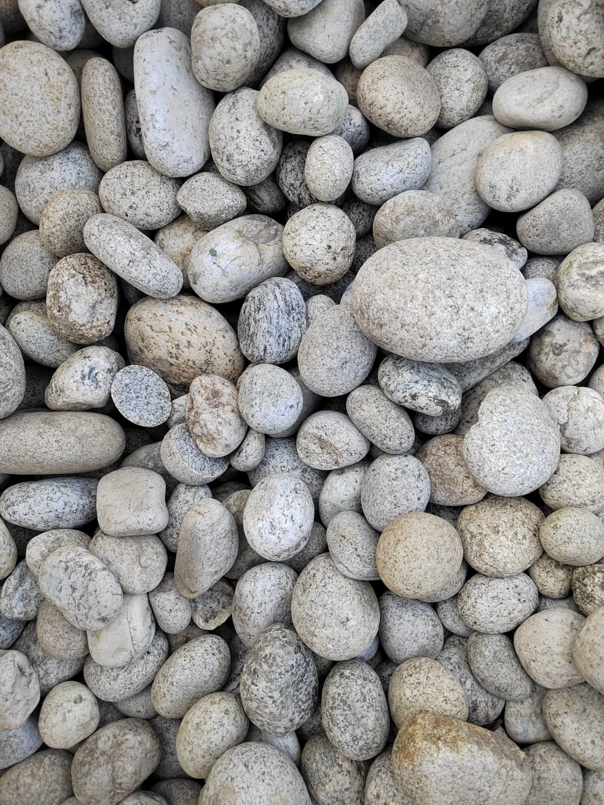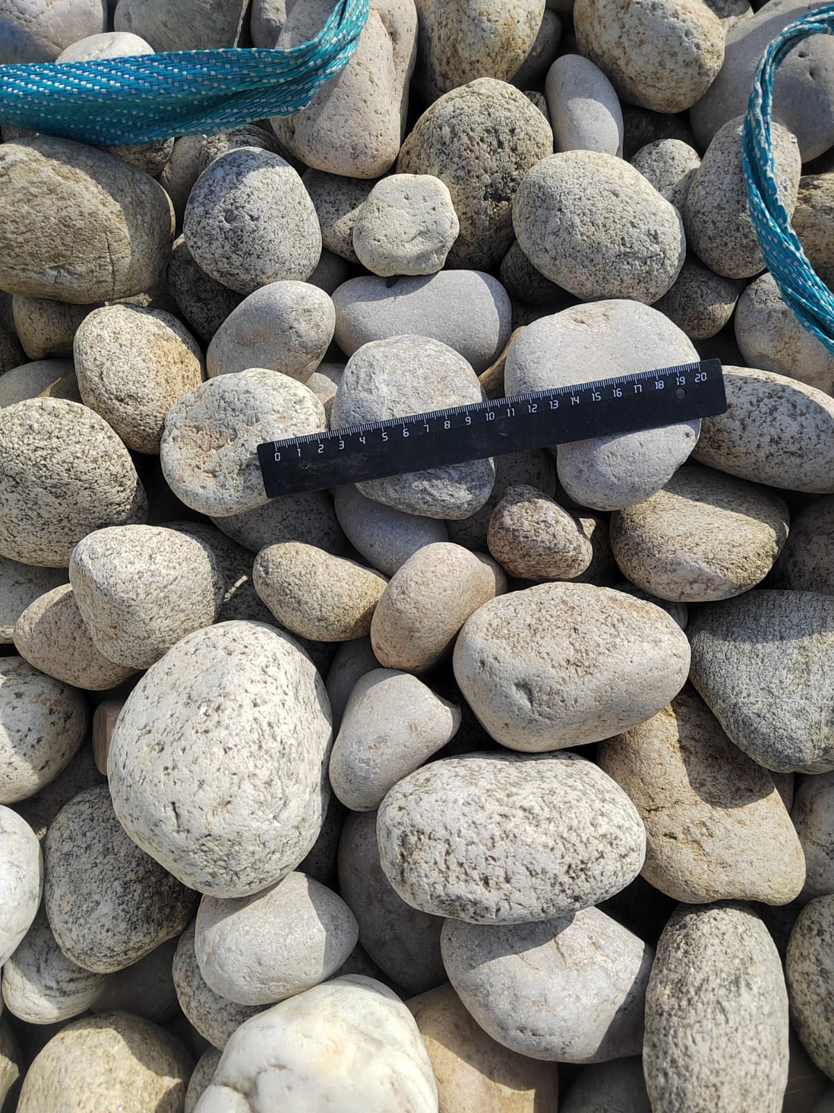 Галька горная речная окатанная (серо-белая, "страусиные яйца")