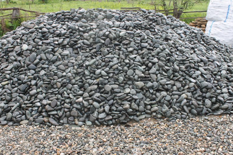 Kamenclub.ru: галька речная окат (темно-серая) фр. 70-150 мм. купить в Ижевске - заказать природный камень по низким ценам оптом с доставкой от производителя - kamenclub.ru