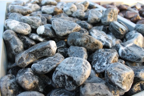 • Kamenclub.ru: Щебень галтованный черный (мрамор) фр. 50-100 мм.  купить в Ижевске мрамор черный с белыми прожилками щебень ландшафтный мраморный 15000 руб/т   фото КАМЕНЬ КЛУБ