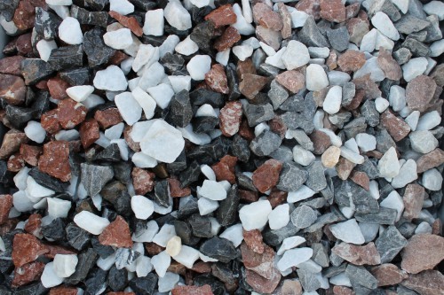 Kamenclub.ru: мраморная крошка (щебень крошка микс : белый-черный-розовый) фр. 20-40 мм. купить в Ижевске - заказать природный камень по низким ценам оптом с доставкой от производителя - kamenclub.ru