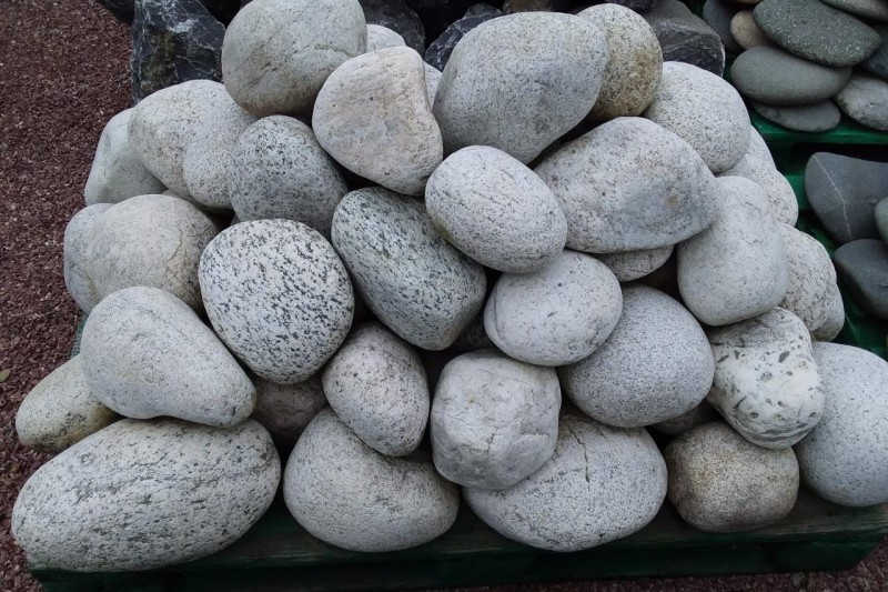 Kamenclub.ru: бело-серый валунчик фр.100-300 мм. купить в Ижевске - заказать природный камень по низким ценам оптом с доставкой от производителя - kamenclub.ru